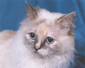 "Blue Tortiepoint" also referred to as "Blue/Cream Point" - point colour is gray with patches of cream. "Seal Tortiepoint" - point colour is brown with patches of red. When the lynx pattern is present it is called a "Torbiepoint".